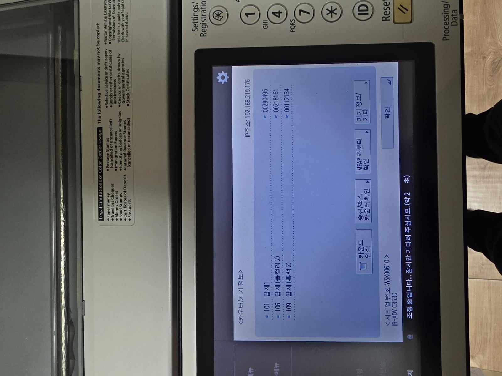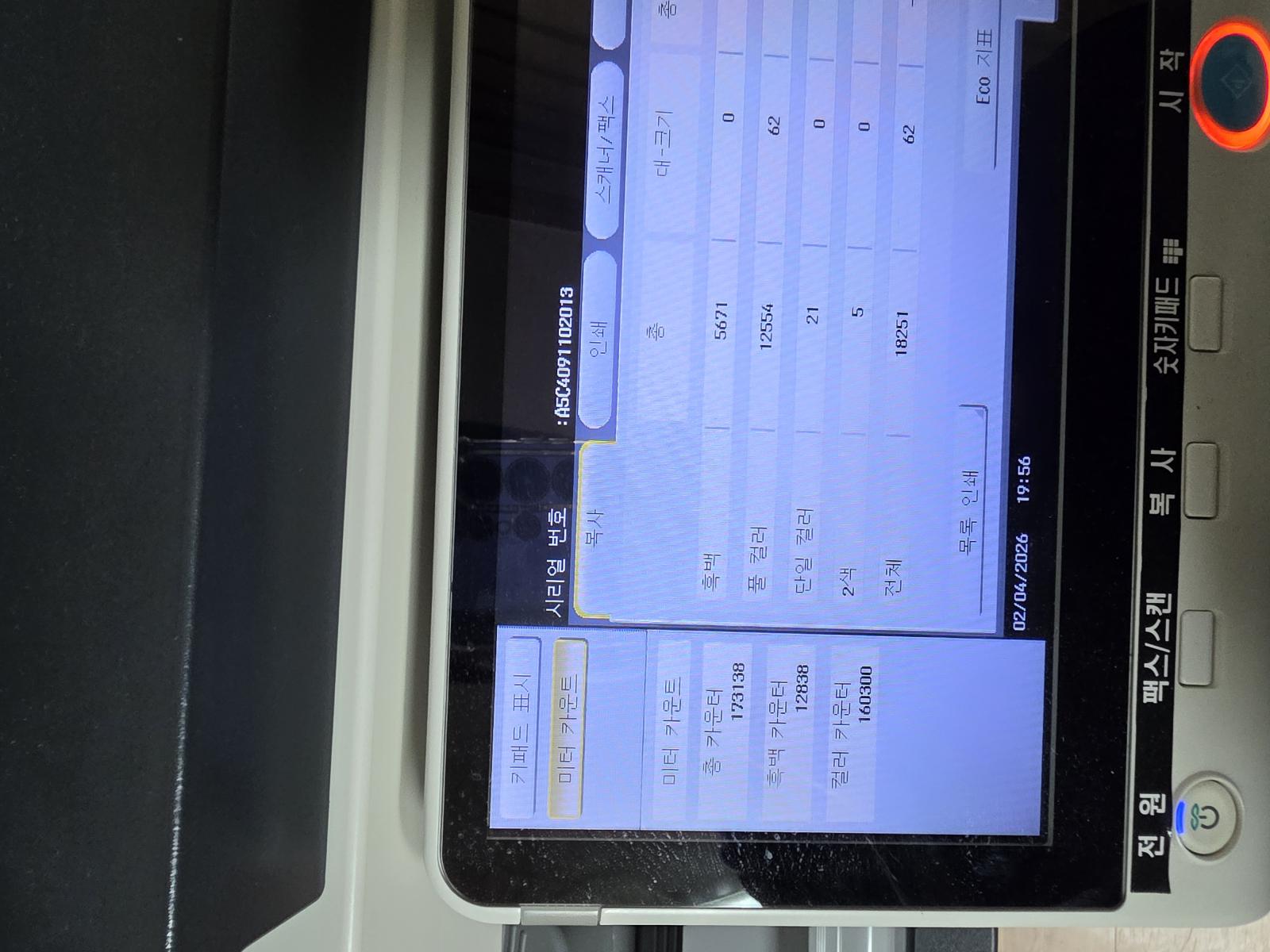 캐논 복사기 토너 검정,빨강,노랑 투입 파랑 교환. 미놀타 복사기 검정,빨강,폐토너투입